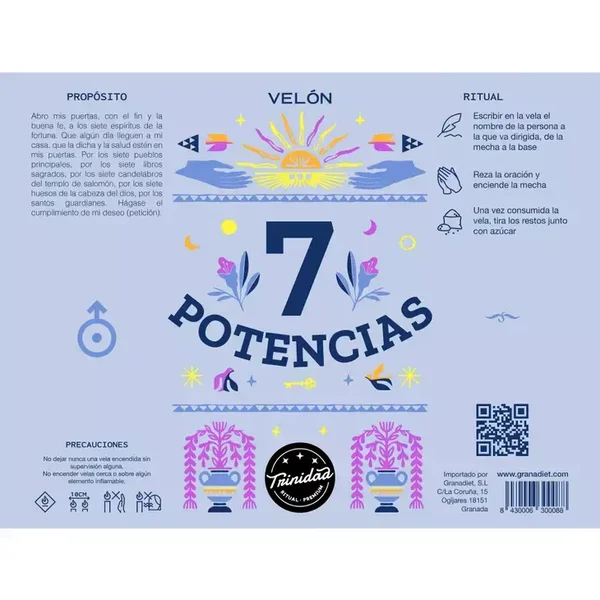 Este velón de 7 colores es ampliamente utilizado en los rituales de Magia Blanca. Cada uno de los 7 colores representa una de las 7 potencias Africanas y simboliza un don específico: